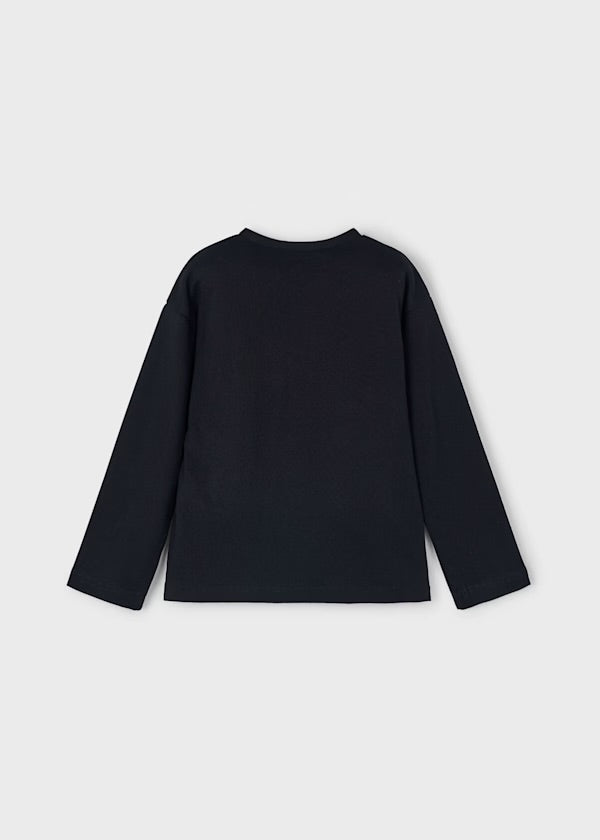 Make a statement with this cute and cuddly Mayoral Girls Teddy long sleeve Tshirt! Featuring a playful animal print design and a stylish bow, this black long sleeve top is a must-have for any fashion-forward little girl. Perfect for adding a touch of fun to any outfit.