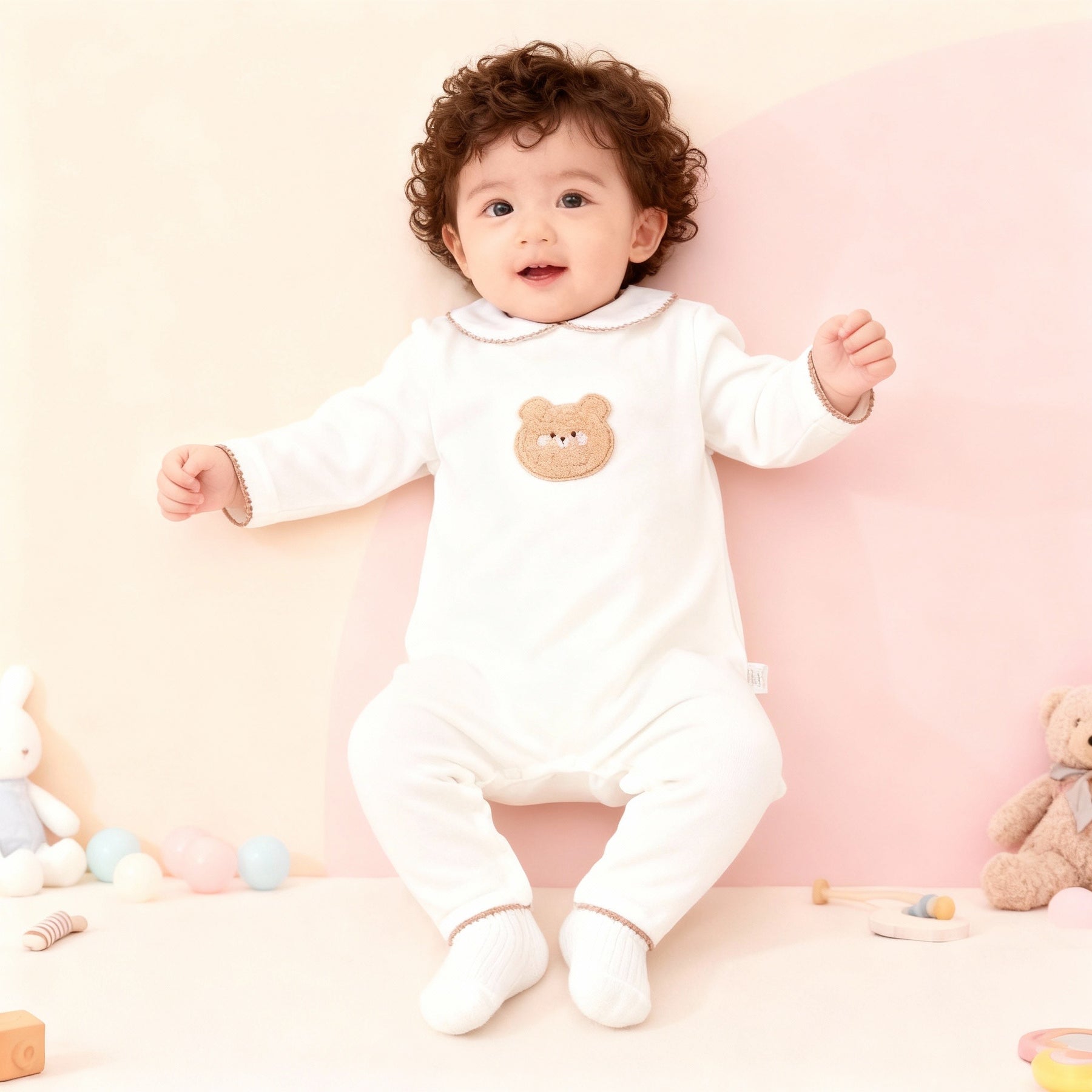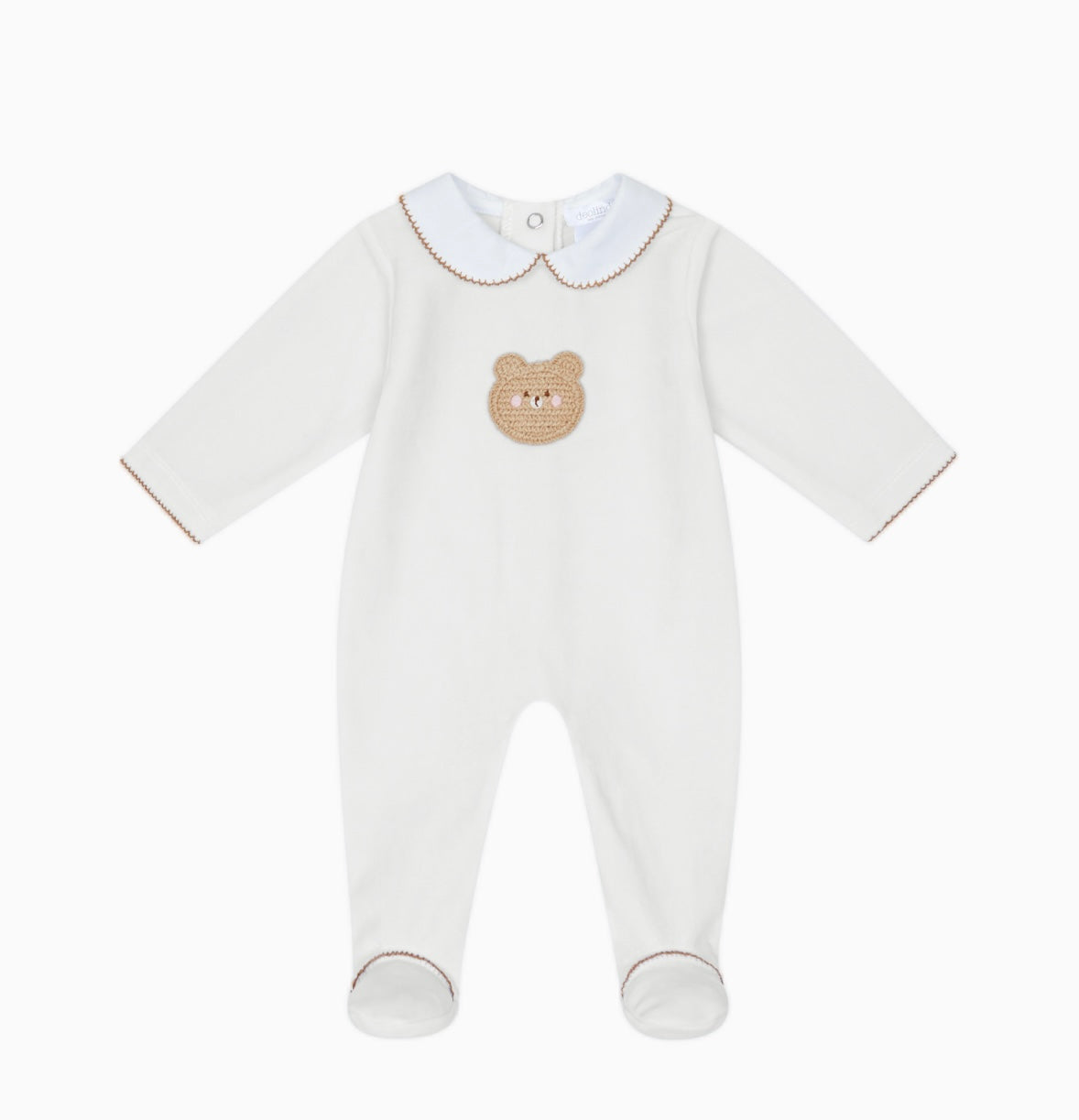 Snuggle up with our Deolinda Cream Teddy Babygrow! Made from velour, this soft and cosy onesie will keep your little one comfortable and warm.