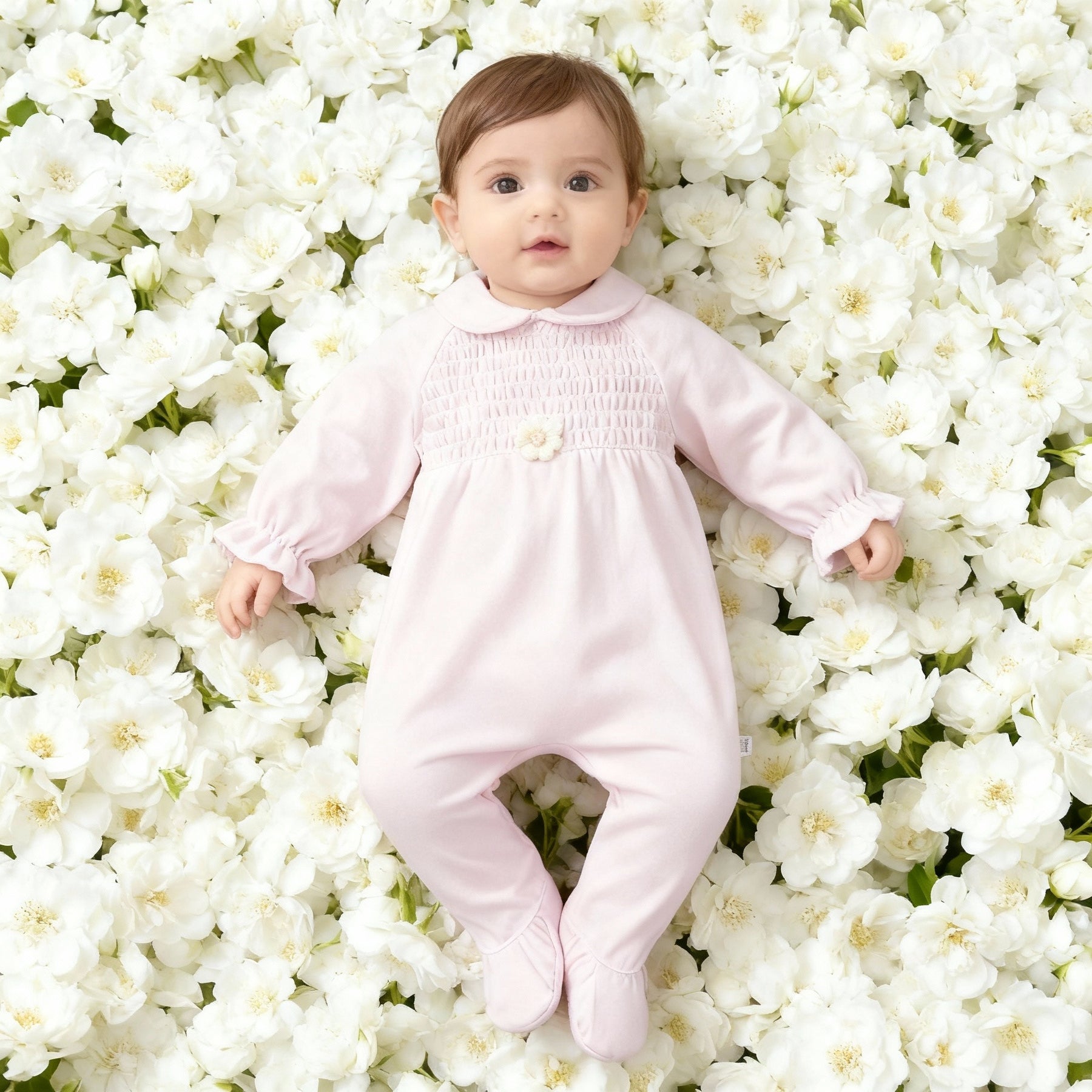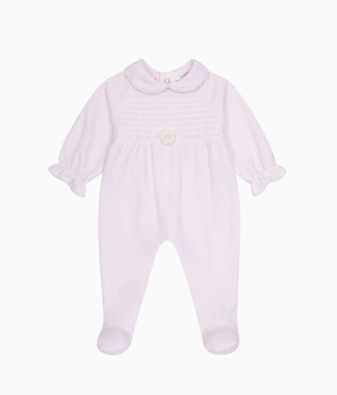 Get ready for cuteness overload with the Deolinda Pink Flower Babygrow! Made from soft velour and featuring a charming Peter Pan collar, and beautiful flower to the centre.