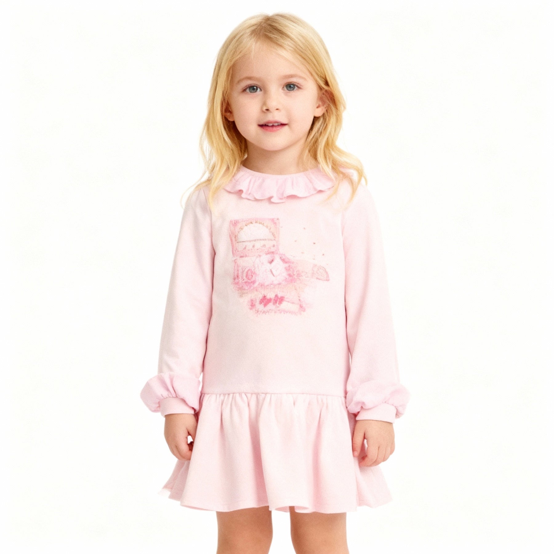 Dress your little girl in style with our Caramelo Jewellery Sweat Dress! Adorned with an embellished jewellery box motif, complete with bows and pearls, this dress is perfect for any fashionista in training. The soft brushed jersey will keep her comfortable all day, while the flared skirt adds a fun touch of movement.