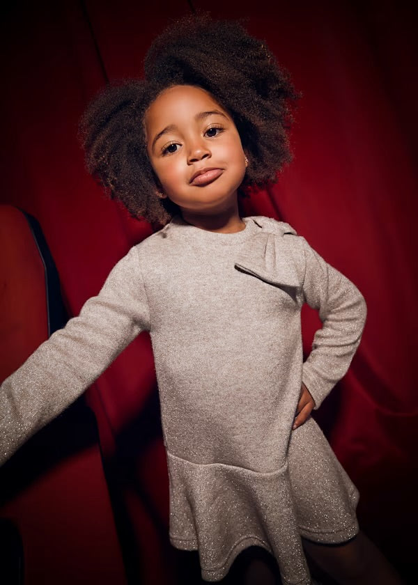 With golden sparkles and a stylish bow on the shoulder, she'll be the star of any occasion. Your fashionista will love the playful yet elegant design of the Mayoral Sparkle Bow Dress.