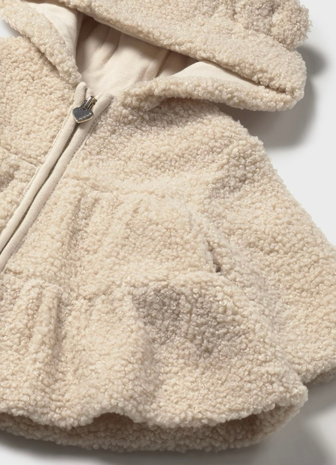 This adorable Mayoral Teddy Fleece Jacket is the perfect addition to your little girl's wardrobe! With a hood featuring cute teddy ears, a front zip closure, and a soft faux fur exterior, it's both stylish and cozy. Stay warm and stylish this season with this beautiful jacket from Mayoral.
