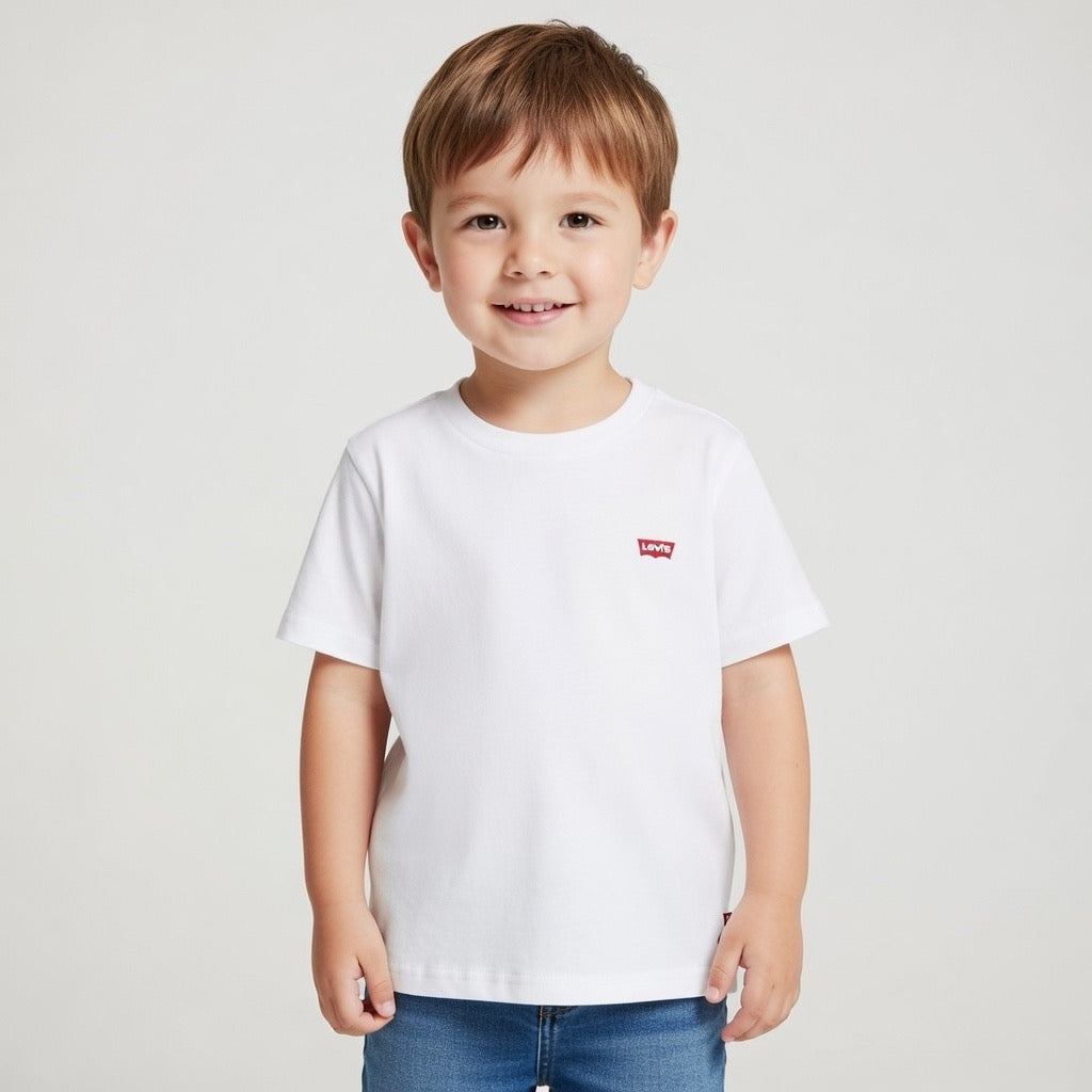 The Levi’s White Batwing Tee features a timeless design with a prominent red Levi’s logo, crafted for durability and comfort. Its versatile color ensures compatibility with a wide range of outfits, making it a practical choice for everyday wear. This t-shirt is ideal for promoting casual, stylish attire in children.