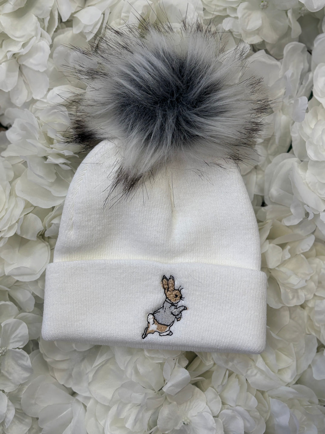 White & Grey Rabbit One Pom Hat