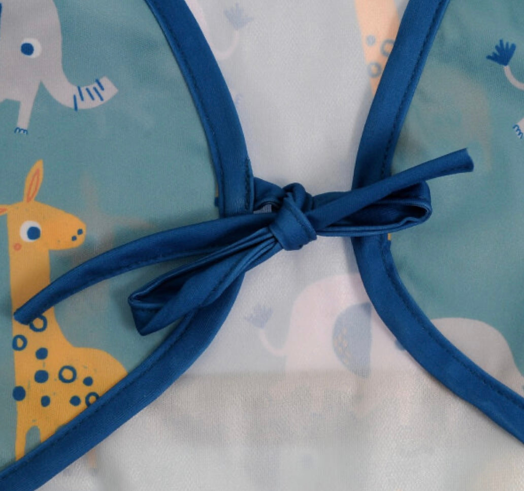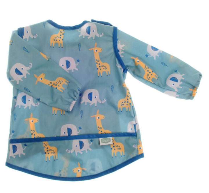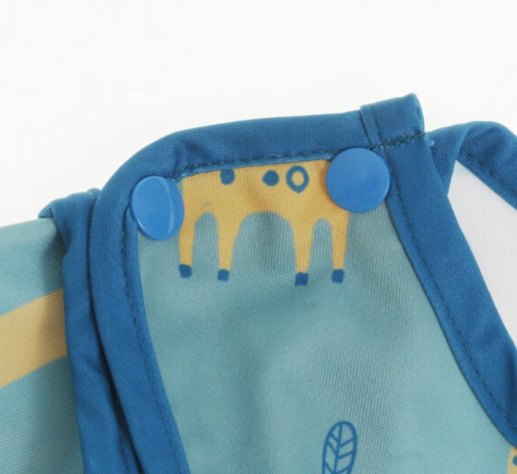 - Cover your little one’s clothes with our Giraffe and Elephant Savanna Animals design long sleeve bib.